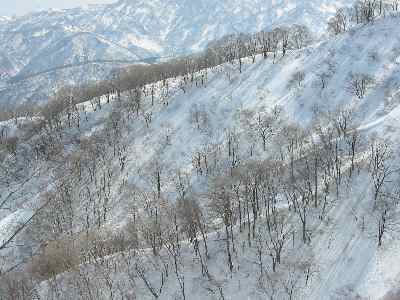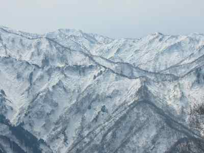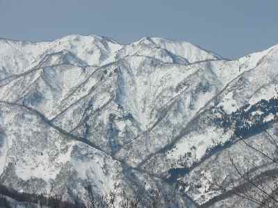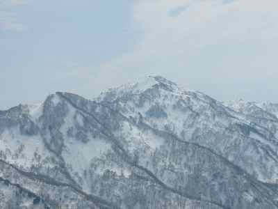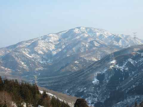 | 林道歩きで振り返れば「医王山」 |