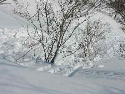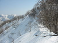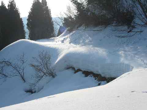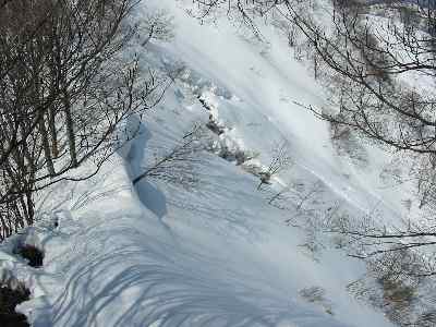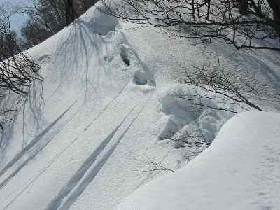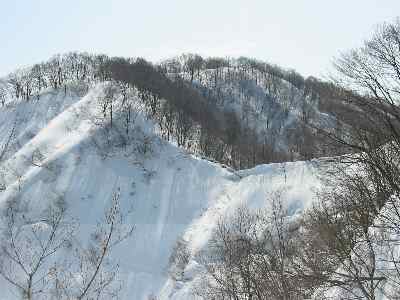 今にも落ちそうな斜面 |