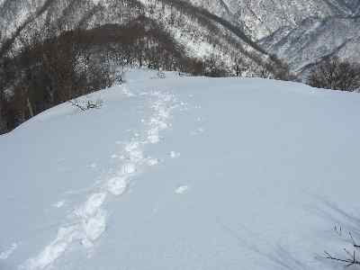 | 狭い尾根を歩く |