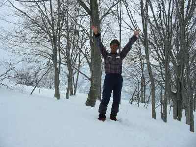 雪が降り出した帰路の大倉山頂で |