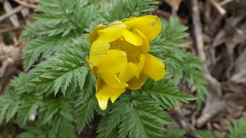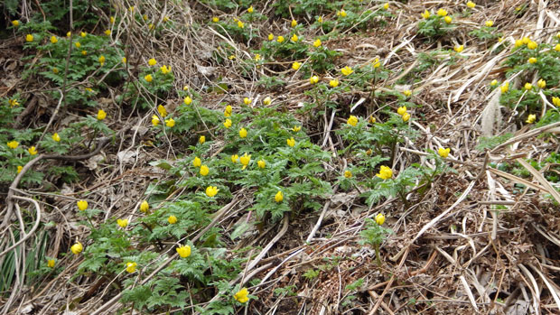 復路は、福寿草群生地に寄りました。時間が遅くなったからでしょうか、萎んでいました。