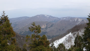 | 大寺山へ行く途中、赤祖父山方面を振り返る。 |