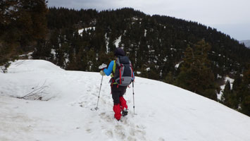 登山口8:25=上の林道(10:05~10)=扇山10:50=赤祖父山頂上(11:10~12:15)=扇山12:35=大寺山との分岐13:00=林道13:10=大寺山頂上(13:35~14:05)=上の林道14:25=福寿草群生地=林道(福寿草入口)15:30=車デボ地点15:40