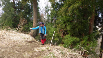 赤祖父山(扇山)登山口は、崩壊が甚だしい。 |