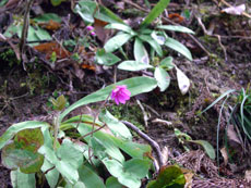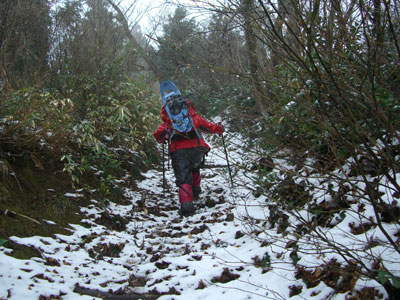 それでも、樹木に付着した雪の白は、まるで桜が咲いたように見えたのは、寂しがる私を癒そうと思ってくれた自然からのプレゼントだったのかもしれない。帰路は、忠実に登山道を降りたが、可愛い雪割草が、ここでも、小さく微笑んでくれたような気がした。