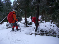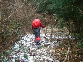 新たな雪は、5~10cmであったが、テーブルやベンチを造るには、ちょっと足りなかった。ブナの原生林の中を、所構わず歩くのが好きな私であるが、今日ばかりは、何故か、ブナは、ほっそりとして見えた。