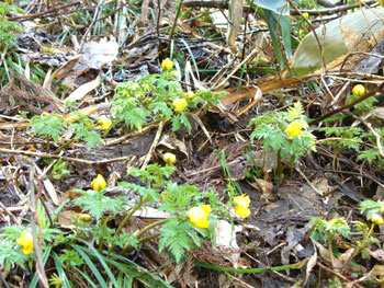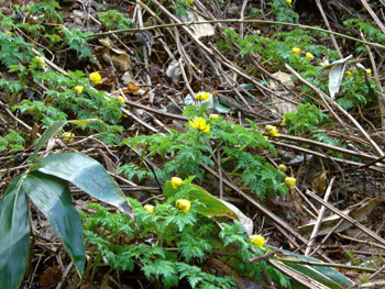 ~~ 福寿草は咲き始めであったが、斜面一面に咲いていた。 ~~