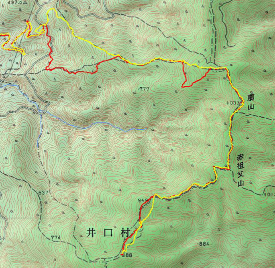 車デボ地点7:25=福寿草(8:15~30)=赤祖父山(10:55~11:00)=988mピーク(11:30~14:10)=扇山15:00=登山口16:15=車デボ地点17:00