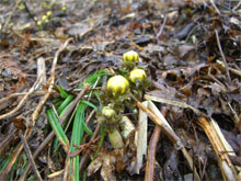 3/31 「福寿草」 と、「赤祖父山から高清水山へのルートの挑戦」 を掲げての雨中山行。その雨は、それ程でもなかったが、すぐに雪となった。福寿草は、このところの寒さで、蕾の域を脱していなかった。(一週間は早かったかな!)