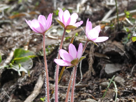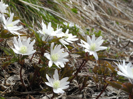 雪解けの進んでいる上部斜面では、かなり開花が進んでいた。