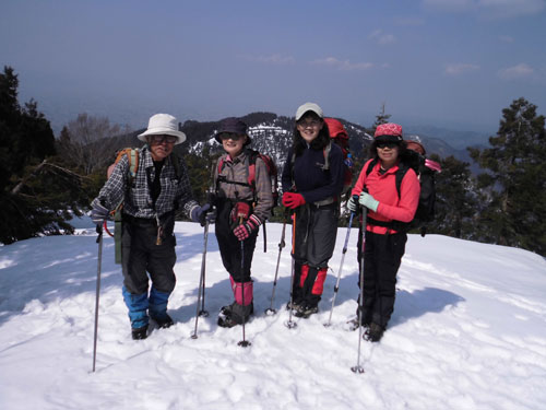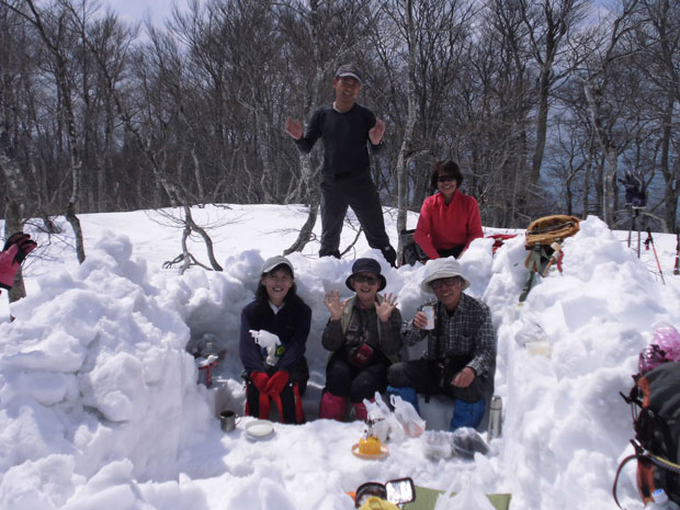 最終地点を扇山として、テーブル・ベンチを造り、ゆっくりと寛いだ。持参した食材を分け合い、積もった話を充分にした。以前、池田氏にyoko夫人との山行を強請っていた事があったが、ひょんな形で実現する事が出来、私にとっては、頗る満足のいく山行となったような気がする。