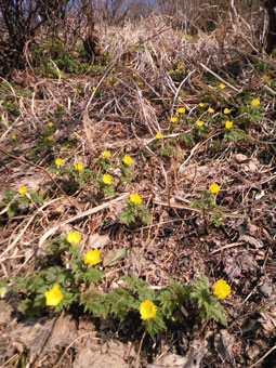 朝方の福寿草は、恥ずかしそうに萎んでいたが、池田氏からの助言を元に、再び群生地に足を運べば、黄色の生き生きした福寿草を見る事が出来とてもハッピーだった。