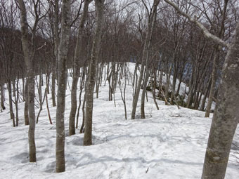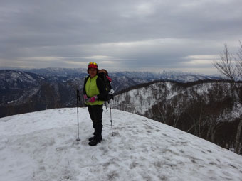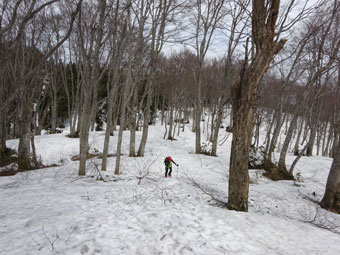 後続の女性二人に追い抜かれたが、それはそれで、お互いの思考の違いだから仕方がない。(凄く元気な方々だった!) 扇山(最高点1,033m) のブナ林も好きなところであるが、今回は、赤祖父山頂上と言われる所まで行く事にしていた。その標識は、雪の下だと思われるが、高清水山方面へのルートと分かれて、その標識から先に行くと展望の良い所がある。(1,013m)