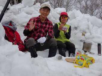 我々は、その分岐点で、ベンチ・テーブルを造った。今にも降りそうな空模様だっただけに、簡単なもので良かったのであるが、アルコールを口にしない事にしている私としては、やる事がないから、壁造りに精出すしかないのである。