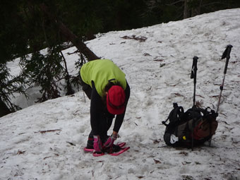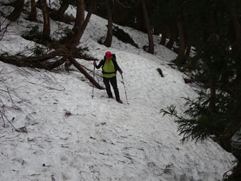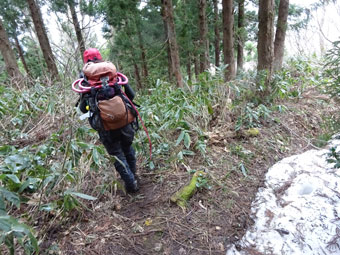 | 分岐(合流地点)から福寿草群生地に向かう。 |