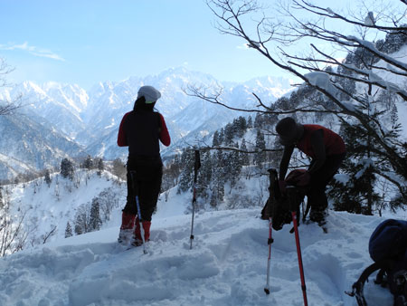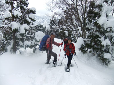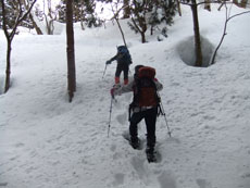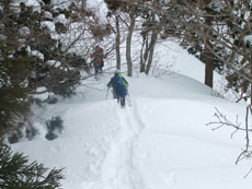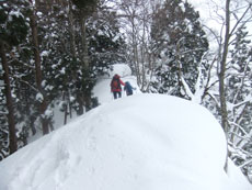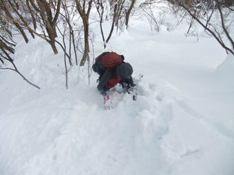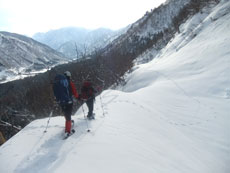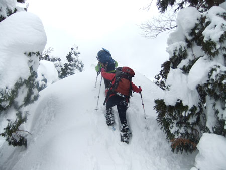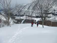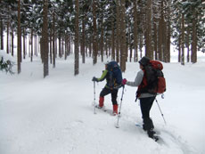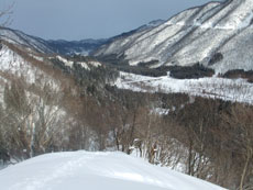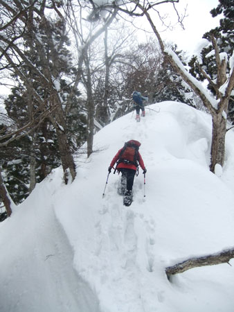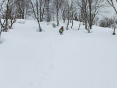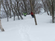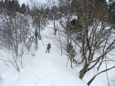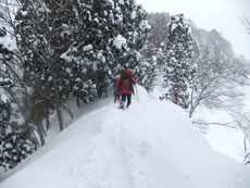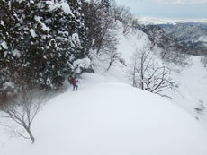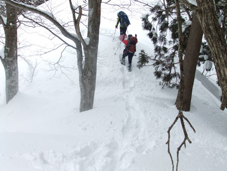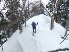 | 除雪された後? | 杉林から・・・ | 尾根に出るための斜面を・・ |