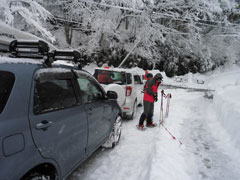 | 邪魔にならぬよう行儀良く駐車。 | 出発式? 「北ちゃん」挨拶。 | 「ラッセル岩城君」先頭! |