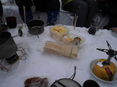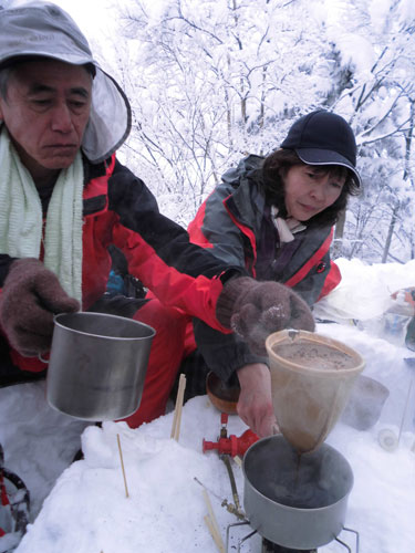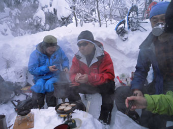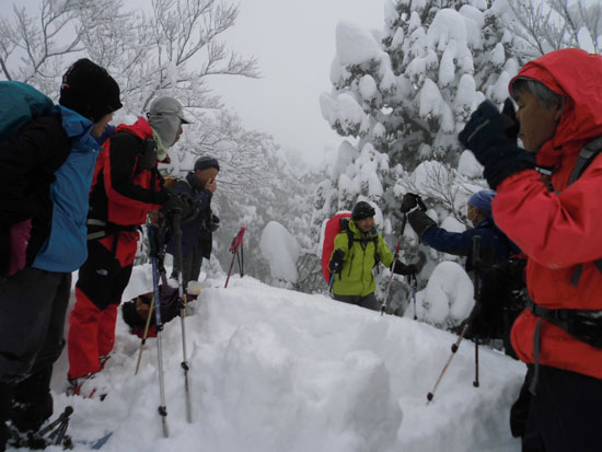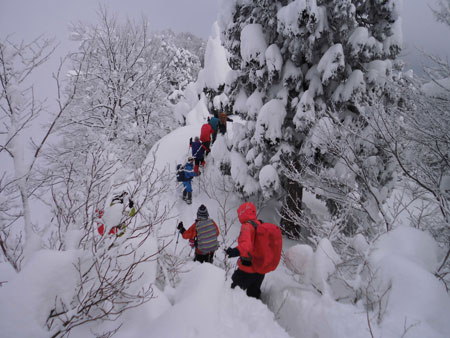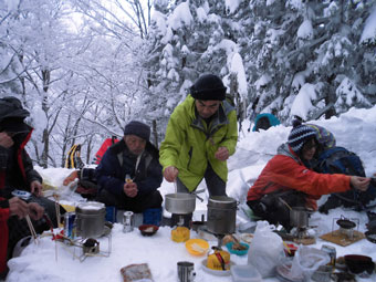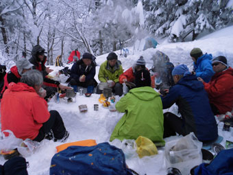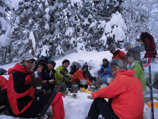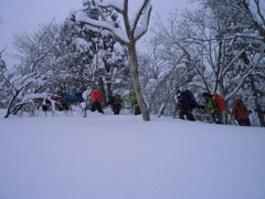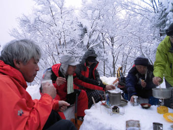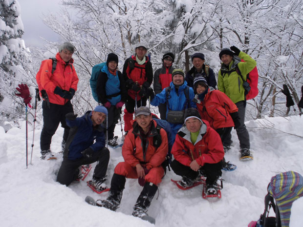 | 1,070mのピークを食事処とした。食事が終わって記念写真を撮る。 |