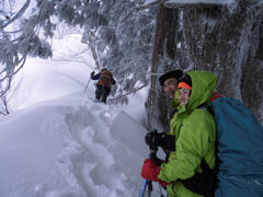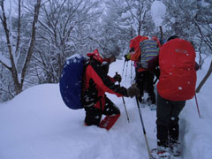 | ちょっと、列を離れて・・・ | ラッセル交代。(ご苦労様です。) | その後、最後尾に付く。 |