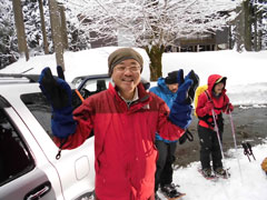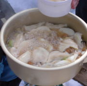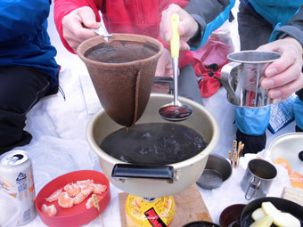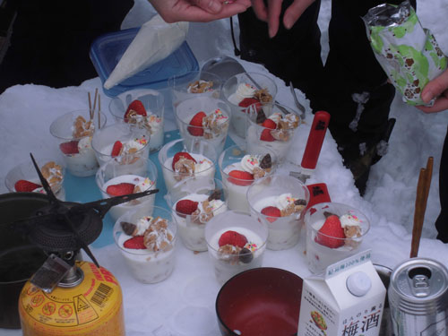1/20 アンリの頂上は賑やかだった。鍋だけでも6つ、他におでんまである。そして、各自が持ち寄ったご馳走が、次から次へと並ぶ。圧巻は、堀シェフの指導の下に、ユキちゃんとあやちゃんが手伝ったスイーツは、正に一つ一つが手作りであった。