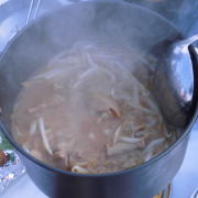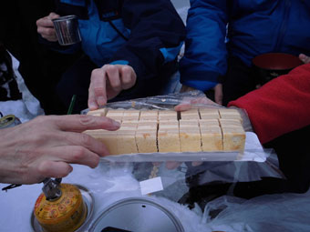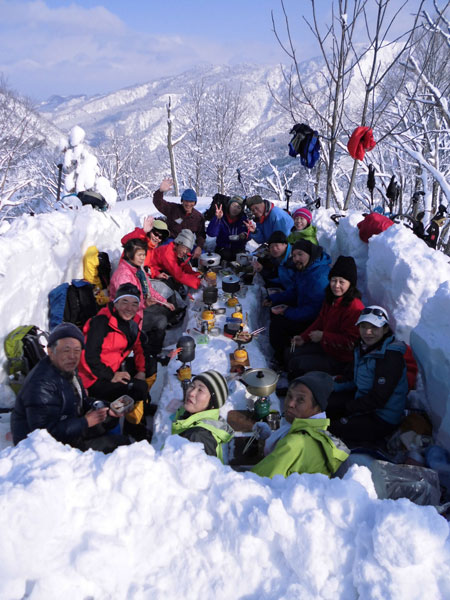 Doiコーヒーも美味しかった。とてつもない人気があり、制作者自身が頂く間がないという盛況ぶりであった。またオリジナルケイキも美味しかったよ。ドンドン目の前に出されるご馳走を口に入れ、シェルターに飛び交う面白い話に、お腹を抱えて笑っていたため、どんなご馳走名だったかよく分からないでいる。でも、とにかく美味しかったし、よく山頂まで持ち込んだもんだと関心していた。