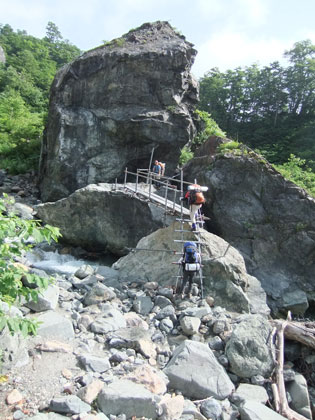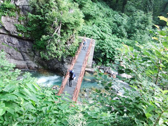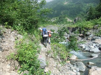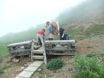 | 白高地沢に架かる仮橋 |