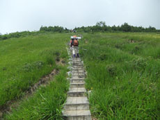 | アヤメ平から、5~10分程で「兵馬の平湿原」 | 兵馬の平湿原はシモツケソウが満開 |