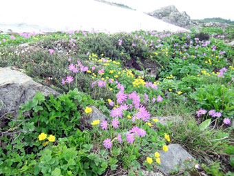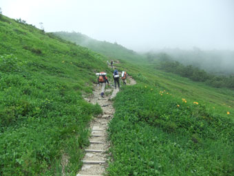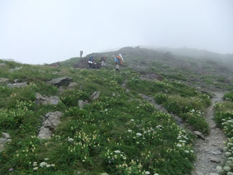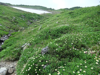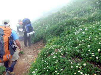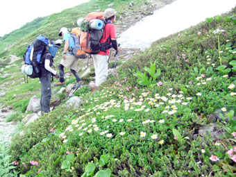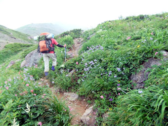 | 良い雰囲気の中を・・・・ | どんどん高山植物が増えてくる。 |
