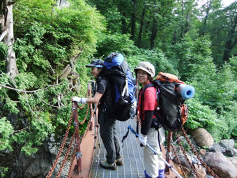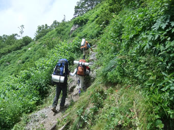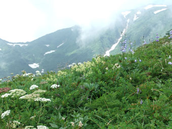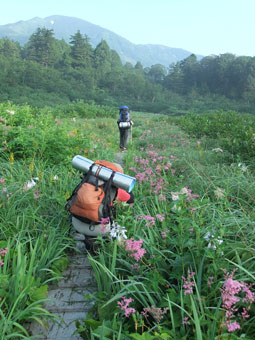 | 蓮華温泉から朝日岳山頂へ。そして、朝日平でキャンプ。 |
