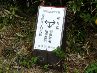 | ここを駆け上がれば「吹上のコル」 | 吹上のコルは、栂海新道の起点。親不知・蓮華温泉・朝日岳への分岐点。 |