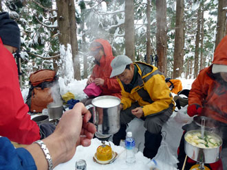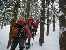 1/9 パターンを狂わすと、やっぱり対応出来ない頭になってしまったのかもしれない。アルペン村7時半集合であったから、出発前に食事をした。そして、「茂ちゃん」の車に便乗させてもらった。8号線の神通川を渡った頃に、時計を忘れた事に気付くと共に、大事なカメラも無い事に気付く。それでいて、三脚をリックに括り付けていて、最後まで担ぎ上げている。