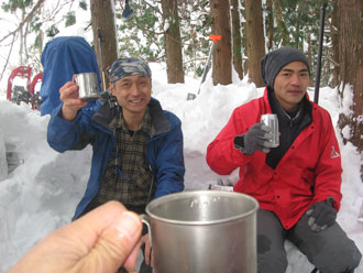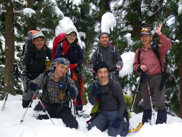 ~~ 樹木から落ちて来る雪を気にしながら、滅多に来られない山頂で一時を過ごした。 ~~