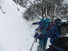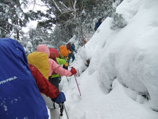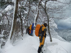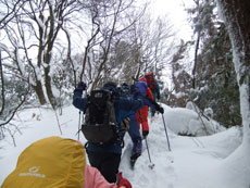 予報が暴風雪、判断は幹事に任せきりであっただけに、何の不満もなく、大勢の山仲間と楽しく歩けるだけで嬉しかった。標高は高くなくとも、小さなアップダウンの繰り返しで、結構歩き甲斐があった。
