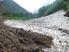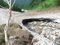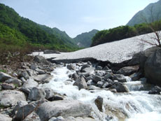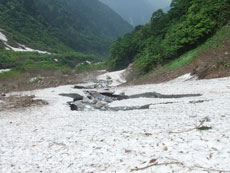 そうこう言いながら、戸倉谷の滝付近まで行ったのであるが、節穴付きの私の目は、ウドを見付ける事が出来なかった。(お情け的に7~8本) 全く雪のない所と、雪だらけの所の差が大きく感じたが、その雪渓の状態も一日一日変わっていくので、注意して渡らなければならないようである。