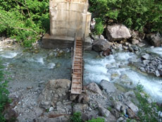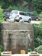 取水口駐車場行く歩行専用の仮橋。