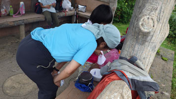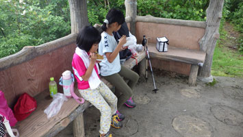 東屋で簡単な食事です。