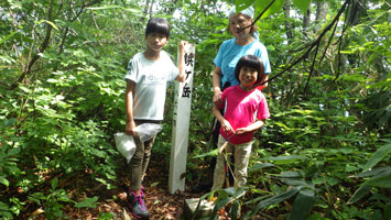 そのちょっと先に行き、鋲岳山頂の標識(三角点も)、そして、反射板の所まで行った。もうちょっと、歩き足らない感じであるが、今更烏帽子山まで行くわけにもいかないし、とりあえず車に戻る事にした。子供達には、「アイスクリームを食べて、もう一つ低い山に登ろう。登ってから、もう一つアイスクリームを・・」 と提案をしたが、「一日に、一つの山でたくさん。アイスクリームも一個で充分という。」