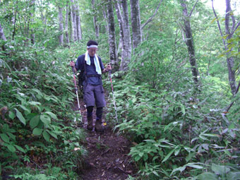 ブナオ峠(7:45〜8:00)=大門山と赤摩木古山との分岐(9:20〜40)=大門山(9:50〜55)=分岐(10:05〜10)=赤摩木古山(10:40〜12:40)=分岐13:05=ブナオ峠(13:55〜14:15)