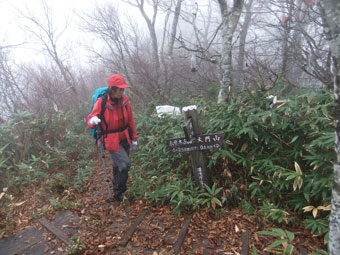 ブナオ峠(11:10〜20)=大門山と赤摩木古山との分岐13:10=大門山(13:25〜14:05)=分岐14:15=赤摩木古山(14:40〜15:00)=分岐15:25=ブナオ峠(16:25〜35)