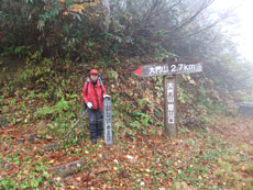 | p.m.1:10 大門山と赤摩木古山の分岐 大門山へ400m、赤摩木古山へ900m。 |