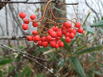| 皆、落葉し、ナナカマドの実(赤)だけが目立った。 |