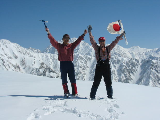そして下の雪が硬く、アイゼンにはカッパ(団子状態)が付き、酷い時には、靴の倍になってしまい、“ まるで、京都の舞妓さんのポックリだね!” などと苦笑していた。でも、その新雪は、青空と共に、我々をもっと奥へ奥へと導いてくれた。木々が視界を遮らなくなった頃には、どちらともなく「ワーッ」と声を上げてしまった。