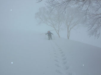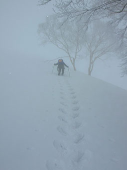 | 残念ながら、視界に阻まれ登頂する事が出来なかった。 |