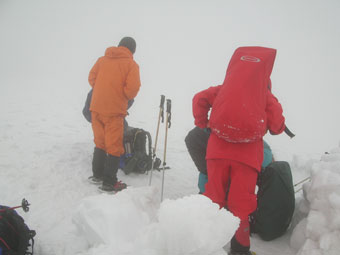 「この時期に、単独でなく、これほどのメンバー(7名)で、しかも視界のない大明神山に足を運んだなどという事は、過去にあまり例がないのではないか?」 驕りではなく、山頂を踏んだメンバーに対しての誉め言葉に、何故か酔いしれて、満足感が漂っていたように思えてならなかった。雨の中を午前5時半頃出発し、車に戻ったのが午後7時である。山頂では宴会場建設時間を含めれば、2時間半程滞在した事になるから、やっぱり凄い!「今回参加を見合わせた二人を、次回