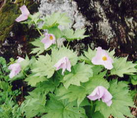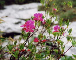 | <カラマツソウ> | <チングルマ> | <イワイチョウ> | <ムラサキヤシオ?> |