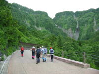 台風の余波なのであろう標高1000mもある称名駐車場に着いても、生暖かい風がそれも強く吹いていた。曇り空で、高温しかも強風で、何時雨が降り出すかと思いながらの出発であったが、ハレルヤ山行は、晴れ男の筏井氏がいるからであろうか、本当に雨が降らないのである。
