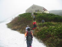 とりあえず、まだ開かれていない大日小屋に行く。全員登頂かと思ったら、鍋料理の準備の関係で、そうもいかなかった。結局、料理の手伝いに役立たない男3人だけが山頂を踏む事になった。