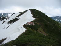 最後の水場から、大日岳稜線(鞍部)までは結構長い。もうすぐ、もうすぐと思いながらなかなかである。大日小屋が見えても一息かかるのである。