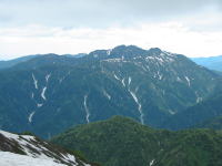 | 雪渓越に毛勝三山 |