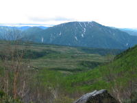木道脇のチングルマを見ながら、ガスに覆われた頂上に向かって進んで行くのだが、高度を上げる毎に、大日平と弥陀ヶ原の平原が広がり、鍬崎山の大きさがわかって来る。例年ならまだ多くの残雪に覆われているのであろうが、今年は雪解けが早くラッキーと言えばいいのか、それとも残念と言えばいいのかわからない。